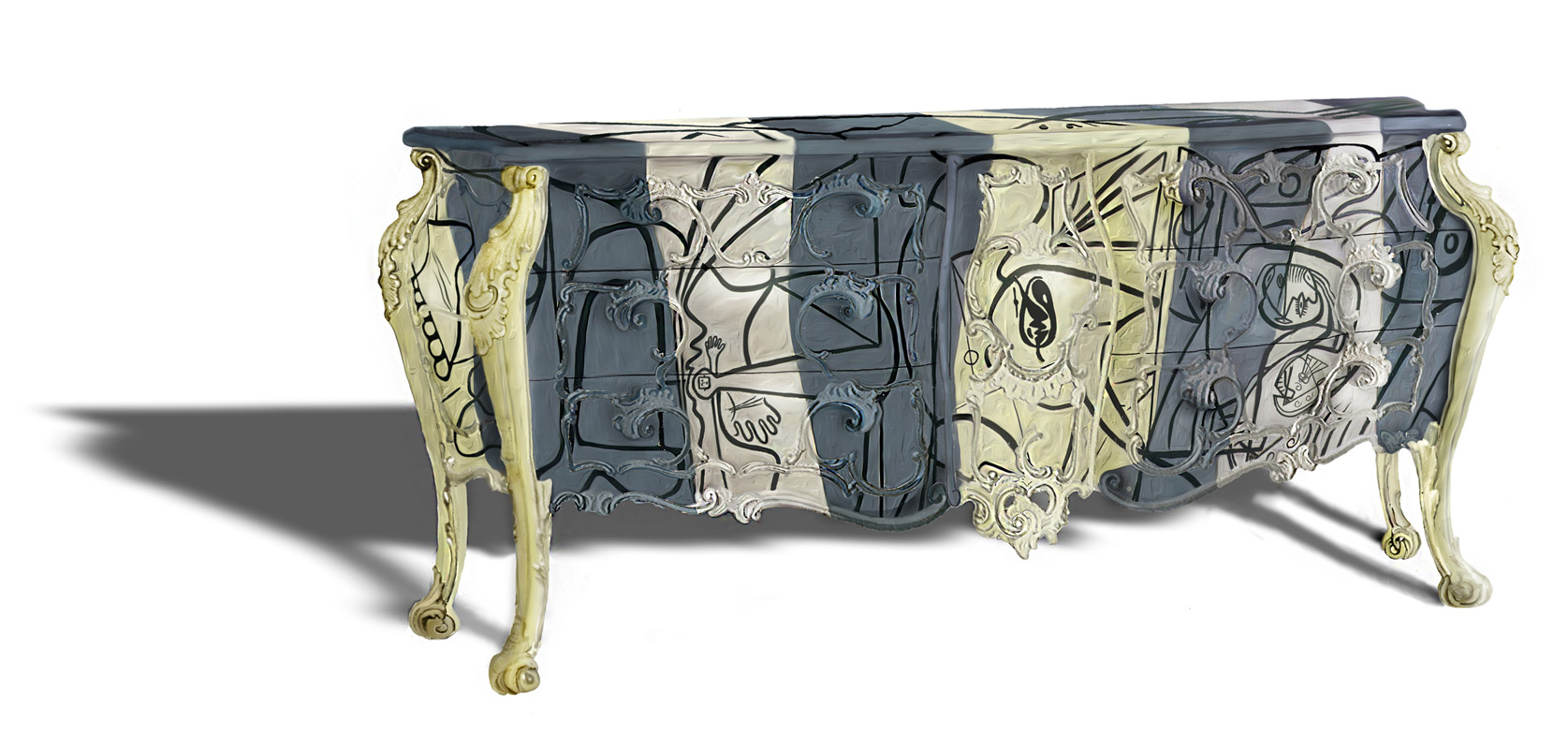 by hand, this baroque dresser is produced in a limited edition.